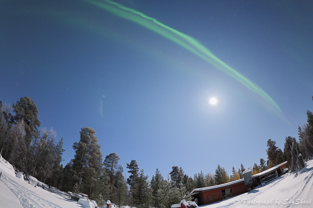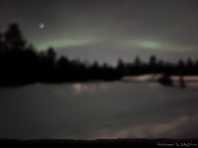天気はそこまで悪くはなかったのですが、満月前後のため空が明るすぎで、また、オーロラ自体も弱い日が多かったです。