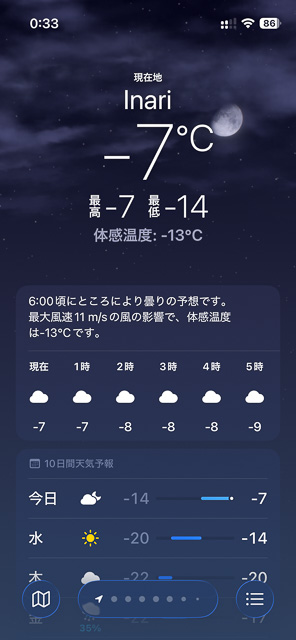 オーロラ観測はイマイチで、いつも以上に暇してましたから。